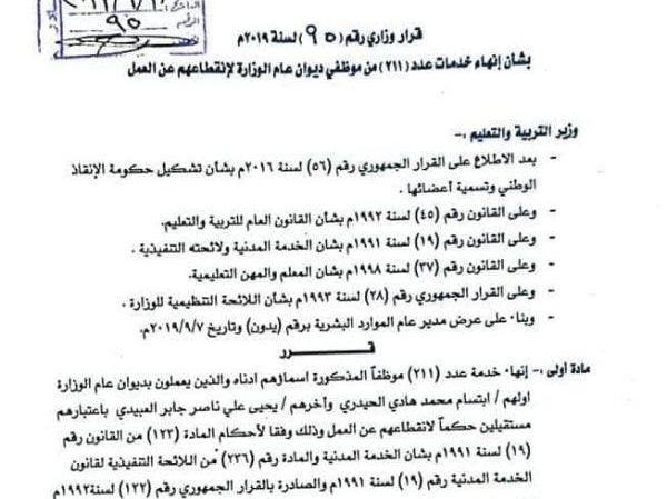 مليشيات الحوثي تفصل 211 موظفاً في ديوان وزارة التربية
