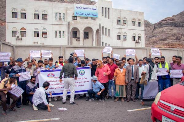 عمال وموظفو ميناء عدن ينفذون وقفة احتجاجية
