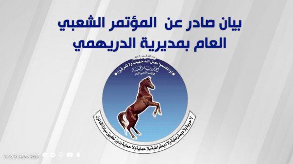 وإزاء كل ذلك فإن قيادة المؤتمر وقواعده وأنصاره بمديرية الدريهمي يؤكدون على التالي :-