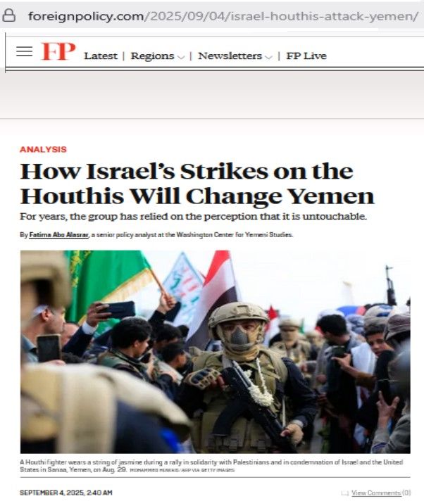 The deeper loss inflected on the Houthi rebels by Israel’s strikes which killed their Prime minister and ministers, is psychological rather operational, according to an analysis published by Foreign Policy.