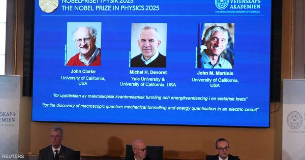 أعلنت الأكاديمية الملكية السويدية للعلوم، الثلاثاء، منح جائزة نوبل في الفيزياء لعام 2025 لكل من البريطاني جون كلارك والفرنسي ميشال ديفوريه والأميركي جون مارتينيس، تقديرا لإسهاماتهم الرائدة في تطوير أنظمة الحوسبة الكمية فائقة التوصيل.