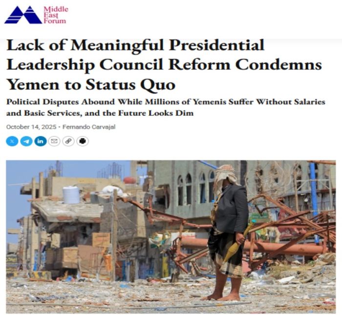 While the Houthis continue to control Yemen’s capital Sana’a, Presidential Leadership Council members operate on survival mode as the economic crisis deepens, and instability grows across liberated provinces, wrote Fernando Carvajal on The Middle East Forum website.