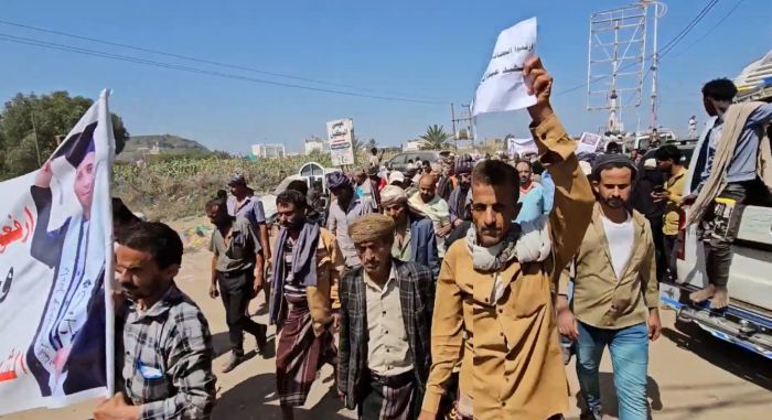 شهدت مدينة التربة جنوب محافظة تعز، اليوم الأحد، تظاهرة جماهيرية حاشدة شارك فيها المئات من أبناء منطقة الحجرية، للمطالبة بالقصاص في قضية مقتل الشاب عبدالرحمن عبدالحكيم النجاشي، الذي قُتل برصاص جنود من أمن مديرية الشمايتين قبل أيام.