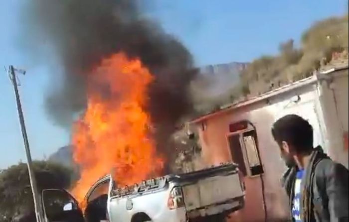 دمت.. بائع قات يضرم النيران في سيارته احتجاجا على الجبايات الحوثية